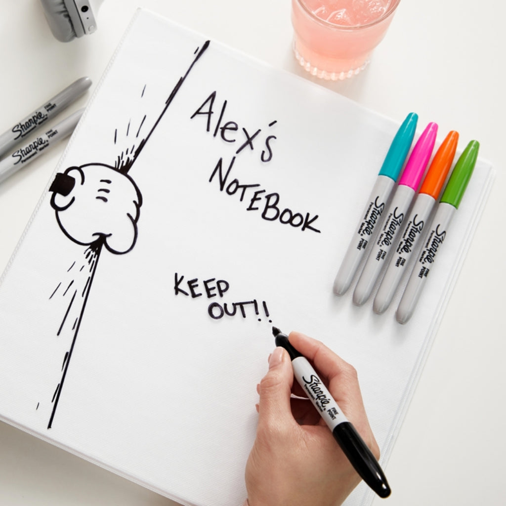 Los marcadores permanentes Sharpie® marcan en la mayoría de las superficies, tales como papel, plástico, metal, vidrio y otras materialidades.