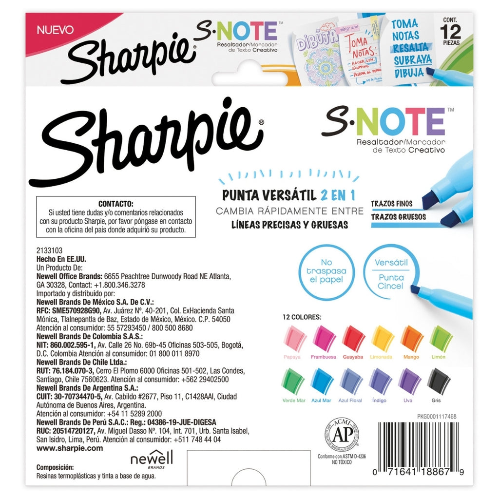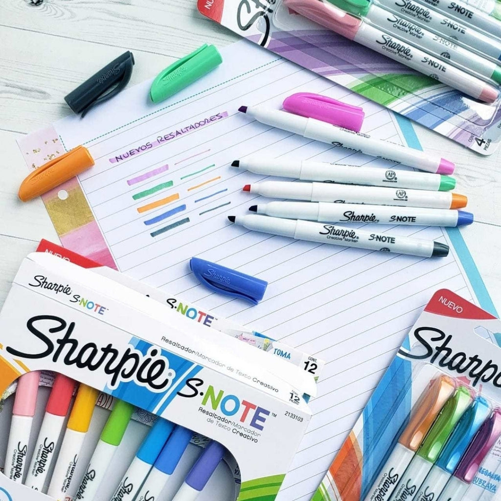 Los nuevos Resaltadores Sharpie S-Note son versátiles y divertidos. Con estos además de destacar, podrás dibujar, colorear, subrayar y más, ya que su tinta no traspasa el papel.